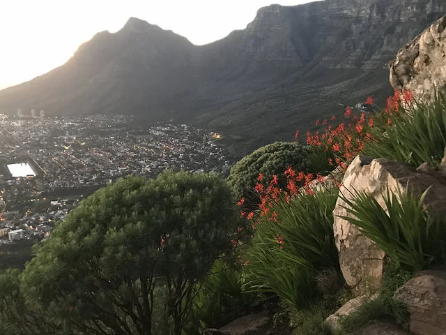 The morning was dark as we began our climb, Lion’s Head looming large above us in the shadow of the early morning. Our headlamps lit a small portion of the trail in front of us as our guide shared more about the flora and fauna we could expect to see as the world brightened. The trail began easily enough, the wide path rising consistently, but manageably, as the sun began to rise over Cape Town.